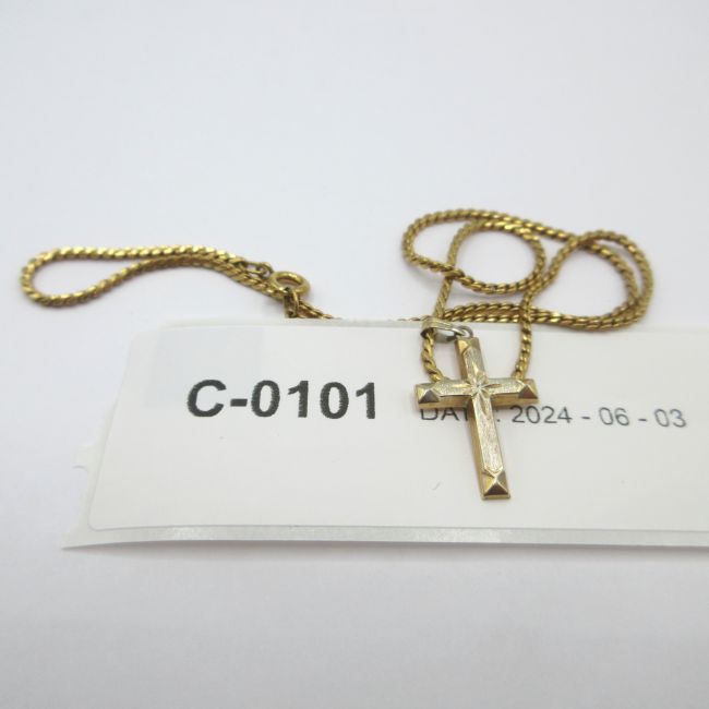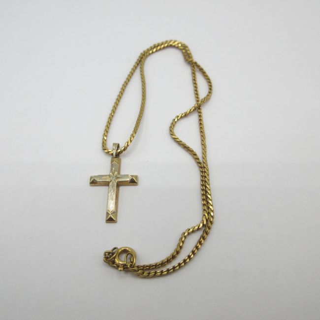 Current Bid: $51.00 [Refresh Price]YOU WILL NEED TO REFRESH THIS PAGE TO SEE UPDATED BID (Log in and this will update automatically) You must LOG IN or REGISTER to see this full page auction listing and bid. Auction is Over Winning Bid Amount: $51.00 **Lot Details: (LOT: C101) - Gold cross 14K and 15" gold necklace. Cross is definitely gold, and chain was always thought to be, as they were given together as a gift, new from jeweller, but cannot see a marking Log in to add this lot to your watch list or place a bid |