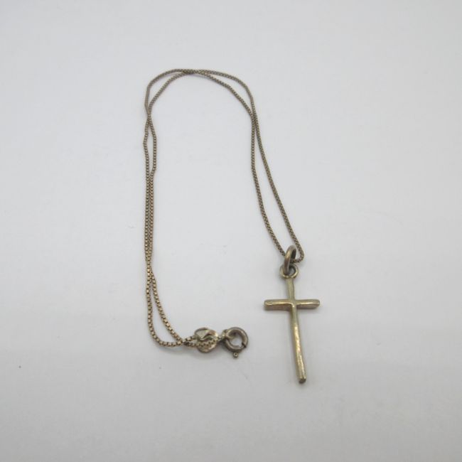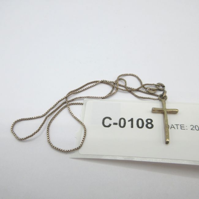 Current Bid: $5.00 [Refresh Price]YOU WILL NEED TO REFRESH THIS PAGE TO SEE UPDATED BID (Log in and this will update automatically) You must LOG IN or REGISTER to see this full page auction listing and bid. Auction is Over Winning Bid Amount: $5.00 **Lot Details: (LOT: C108) - Silver 16" fine box chain with silver cross pendant Log in to add this lot to your watch list or place a bid |
