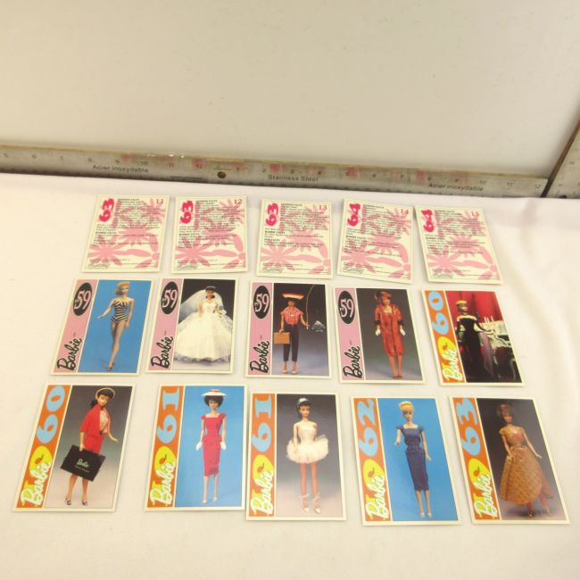 Current Bid: $11.00 [Refresh Price]YOU WILL NEED TO REFRESH THIS PAGE TO SEE UPDATED BID (Log in and this will update automatically) You must LOG IN or REGISTER to see this full page auction listing and bid. Auction is Over Winning Bid Amount: $11.00 **Lot Details: (LOT: C111) - Barbie Trading Cards. Mint in box, 196 trading cards. Never removed. 1991 English Edition. Complete set. Barbie is making a comeback! Log in to add this lot to your watch list or place a bid |