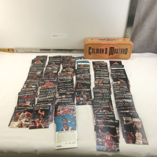 Current Bid: $15.00 [Refresh Price]YOU WILL NEED TO REFRESH THIS PAGE TO SEE UPDATED BID (Log in and this will update automatically) You must LOG IN or REGISTER to see this full page auction listing and bid. Auction is Over Winning Bid Amount: $15.00 **Lot Details: (LOT: C113) - Skybox USA Basketball Dream Team - 1992 full set. This USA Basketball Dream Team is complete (110 cards) and all are in excellent condition. Handled only once upon opening in 1992. Featuring legends: Larry Bird, Magi... Log in to add this lot to your watch list or place a bid |