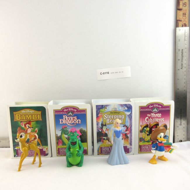 Current Bid: $5.00 [Refresh Price]YOU WILL NEED TO REFRESH THIS PAGE TO SEE UPDATED BID (Log in and this will update automatically) You must LOG IN or REGISTER to see this full page auction listing and bid. Auction is Over Winning Bid Amount: $5.00 **Lot Details: (LOT: C116) - 1996 Disney Happy Meal Masterpiece Collection. Brand new in boxes with plastic slip covers. Partial set (4 out of 8) from 1996: Bambi, Pete's Dragon, Sleeping Beauty and the Three Caballeros. Log in to add this lot to your watch list or place a bid |