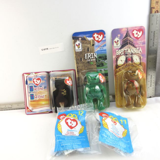 Current Bid: $5.00 [Refresh Price]YOU WILL NEED TO REFRESH THIS PAGE TO SEE UPDATED BID (Log in and this will update automatically) You must LOG IN or REGISTER to see this full page auction listing and bid. Auction is Over Winning Bid Amount: $5.00 **Lot Details: (LOT: C119) - Lot of Ty McDonald's Bears including Britania, Erin, The End and 2 Ty Tennie Beanies (PEANUT and NANOOK). Storage container included. This unopened McDonalds Britania Bear has the 1993 date error on its tush tag, ... Log in to add this lot to your watch list or place a bid |