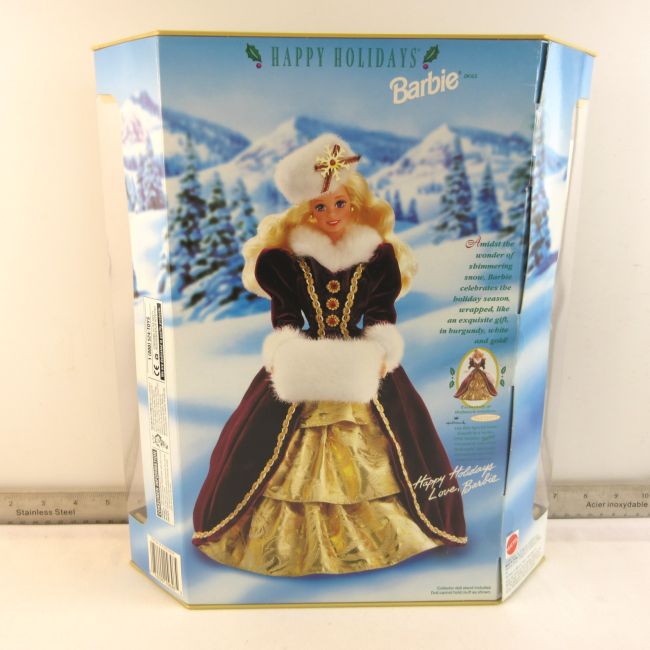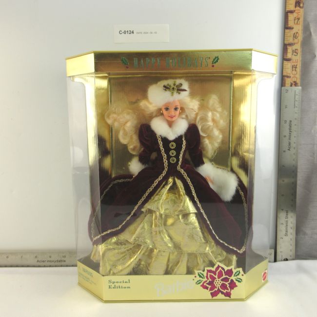 Current Bid: $11.00 [Refresh Price]YOU WILL NEED TO REFRESH THIS PAGE TO SEE UPDATED BID (Log in and this will update automatically) You must LOG IN or REGISTER to see this full page auction listing and bid. Auction is Over Winning Bid Amount: $11.00 **Lot Details: (LOT: C124) - 1996 Barbie Happy Holidays - Special Edition. This doll is NRFB and is in pristine condition stored in a non-smoking home. Log in to add this lot to your watch list or place a bid |