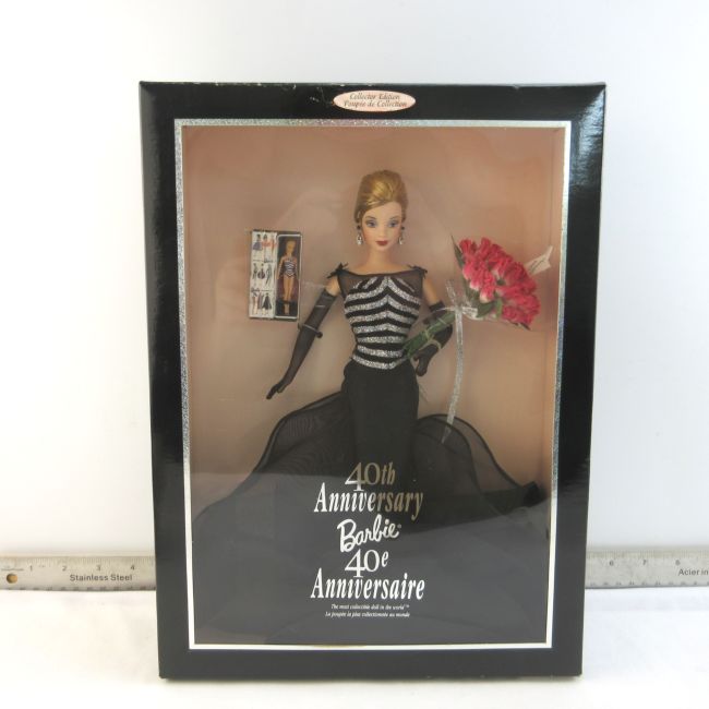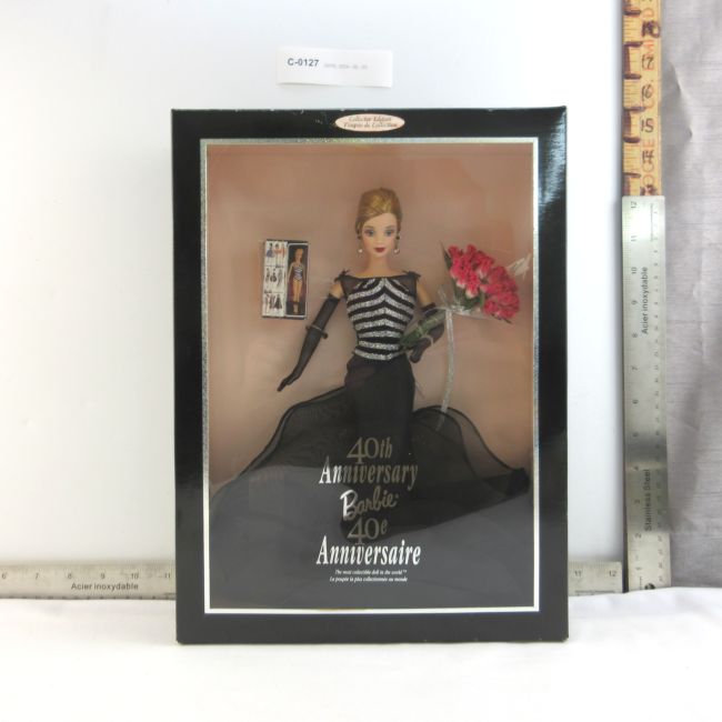 Current Bid: $17.00 [Refresh Price]YOU WILL NEED TO REFRESH THIS PAGE TO SEE UPDATED BID (Log in and this will update automatically) You must LOG IN or REGISTER to see this full page auction listing and bid. Auction is Over Winning Bid Amount: $17.00 **Lot Details: (LOT: C127) - 1999 Barbie 40th Anniversary. This collector's Barbie doll is NRFB and is in pristine condition stored in a non-smoking home. This stunning doll has a miniature replica of the original Barbie boxed inside. With th... Log in to add this lot to your watch list or place a bid |