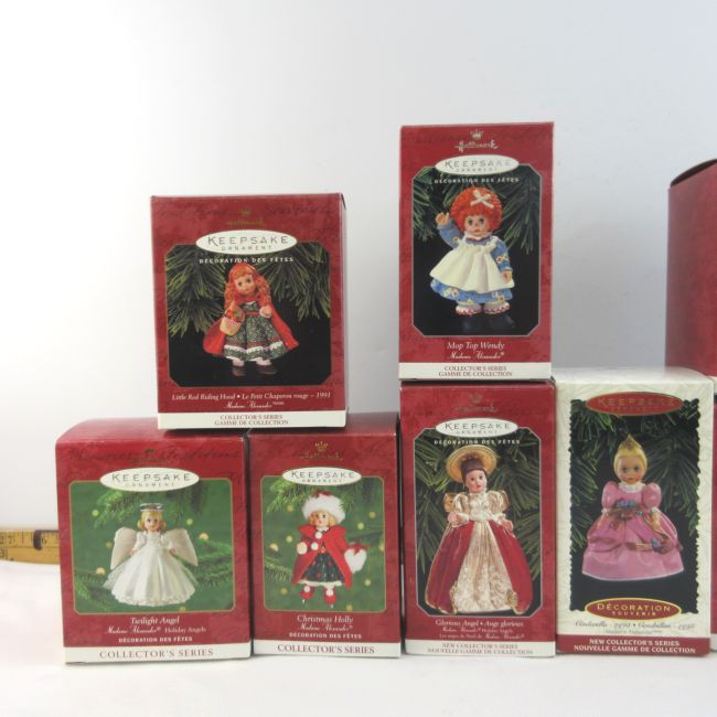 Current Bid: $9.00 [Refresh Price]YOU WILL NEED TO REFRESH THIS PAGE TO SEE UPDATED BID (Log in and this will update automatically) You must LOG IN or REGISTER to see this full page auction listing and bid. Auction is Over Winning Bid Amount: $9.00 **Lot Details: (LOT: C129) - Hallmark Keepsake Madame Alexander Ornaments Collection - 9 Mint in Box. This lot offers all three (3) of the Holiday Angels Collector Series (Glorious (1998), Nativity (1999) and Twilight (2000)); the first six (6) ... Log in to add this lot to your watch list or place a bid |