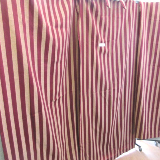 Current Bid: $5.00 [Refresh Price]YOU WILL NEED TO REFRESH THIS PAGE TO SEE UPDATED BID (Log in and this will update automatically) You must LOG IN or REGISTER to see this full page auction listing and bid. Auction is Over Winning Bid Amount: $5.00 **Lot Details: (LOT: C137) - Better Homes and Gardens curtain panels (3), each 84" L (including 4" of loops) x 40" W. These panels come in lovely burgundy satin and shimmery gold stripes. Dust free non-smoking home. New no packaging. Log in to add this lot to your watch list or place a bid |