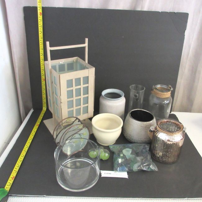 Current Bid: $5.00 [Refresh Price]YOU WILL NEED TO REFRESH THIS PAGE TO SEE UPDATED BID (Log in and this will update automatically) You must LOG IN or REGISTER to see this full page auction listing and bid. Auction is Over Winning Bid Amount: $5.00 **Lot Details: (LOT: C142) - Decor items - many lovely arrangements and empty spots in your home or business can be accented with these. Quality metal candle lantern, heavy with glass windows. Base is about 8" x 8"; Assortment of household... Log in to add this lot to your watch list or place a bid |