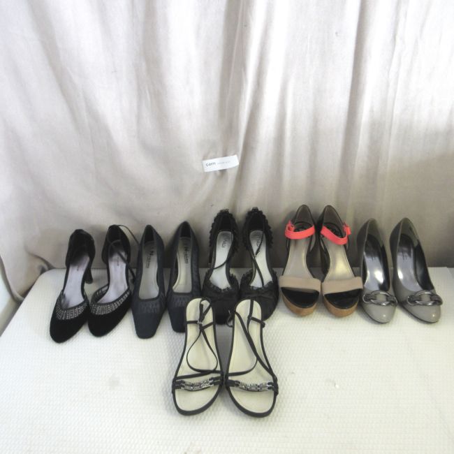 Current Bid: $9.00 [Refresh Price]YOU WILL NEED TO REFRESH THIS PAGE TO SEE UPDATED BID (Log in and this will update automatically) You must LOG IN or REGISTER to see this full page auction listing and bid. Auction is Over Winning Bid Amount: $9.00 **Lot Details: (LOT: C171) - Lot of shoes - mostly new/ never worn and a couple worn once. Size 9, 9 1/2, 10. Includes new Fergalicious PATTIE slingbacks, GEOX wedge dress strappy and rhinestone sandals (expensive), Nygard Navy Blue pumps, Jessi... Log in to add this lot to your watch list or place a bid |