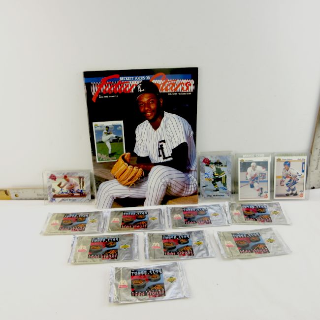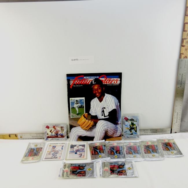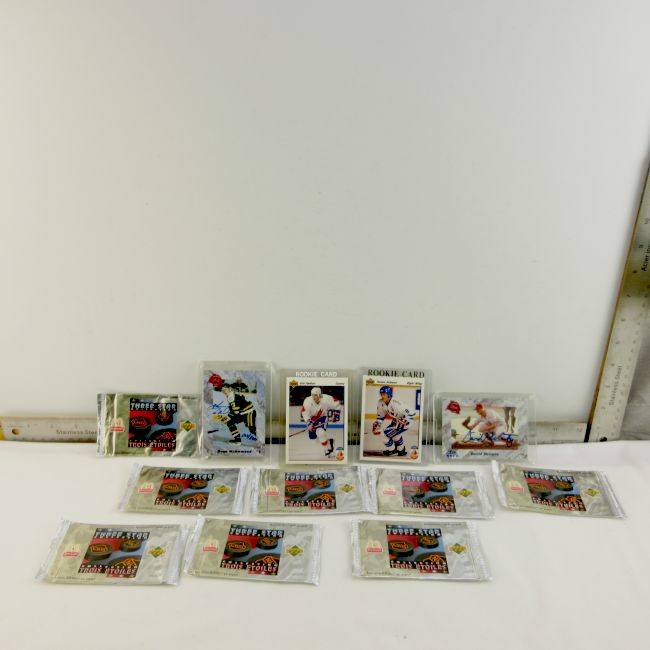 Current Bid: $9.00 [Refresh Price]YOU WILL NEED TO REFRESH THIS PAGE TO SEE UPDATED BID (Log in and this will update automatically) You must LOG IN or REGISTER to see this full page auction listing and bid. Auction is Over Winning Bid Amount: $9.00 **Lot Details: (LOT: C173) - This lot of mainly hockey cards includes: Teemu Selane Rookie card - mint in sleeve since 1991; Eric Lindros 1991/92 Upper Deck Rookie Card #9 Canada Cup Series - French version; 1991 Dean McAmmond autographed Classi... Log in to add this lot to your watch list or place a bid |