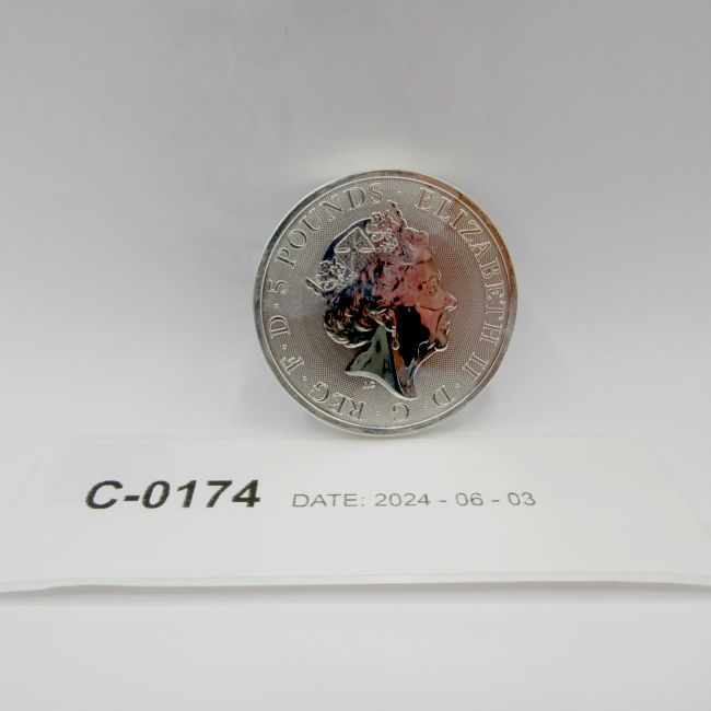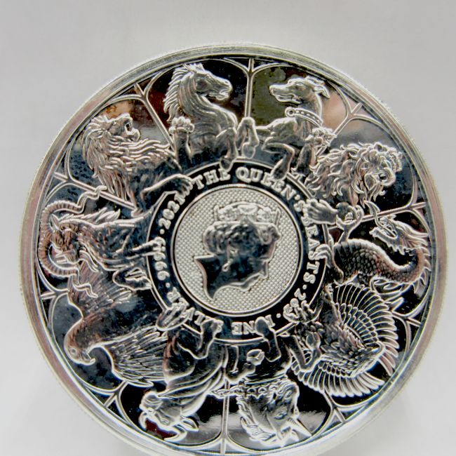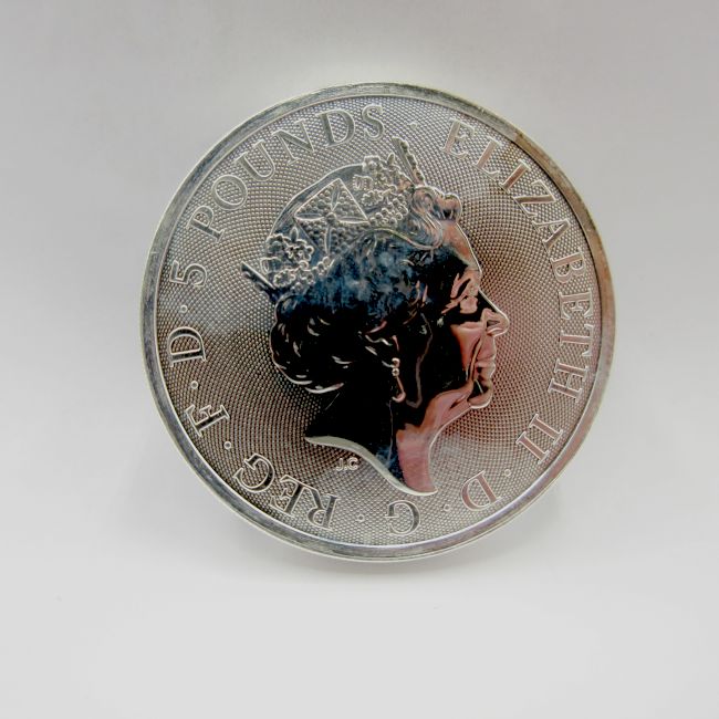 Current Bid: $80.20 [Refresh Price]YOU WILL NEED TO REFRESH THIS PAGE TO SEE UPDATED BID (Log in and this will update automatically) You must LOG IN or REGISTER to see this full page auction listing and bid. Auction is Over Winning Bid Amount: $80.20 **Lot Details: (LOT: C174) - 2021 £5 Pounds The Queen’s Beasts Completer 2oz .9999 Silver Bullion Coin. This fine silver coin (2 oz) is not available anymore from the Royal Mint and features all 10 of the Queen's beasts that had their own ... Log in to add this lot to your watch list or place a bid |