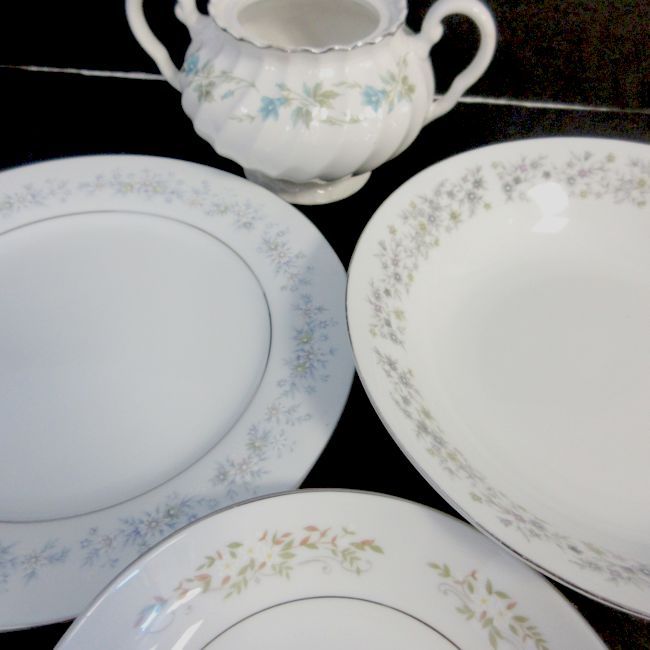 Current Bid: $5.00 [Refresh Price]YOU WILL NEED TO REFRESH THIS PAGE TO SEE UPDATED BID (Log in and this will update automatically) You must LOG IN or REGISTER to see this full page auction listing and bid. Auction is Over Winning Bid Amount: $5.00 **Lot Details: (LOT: C177) - Marywood Noritake 2181. 8 small dinner/ salad plates; 8 dainties plates - no signs of use/scratching or chips; extra creamer, dish, small bowls that aren't matching. Log in to add this lot to your watch list or place a bid |