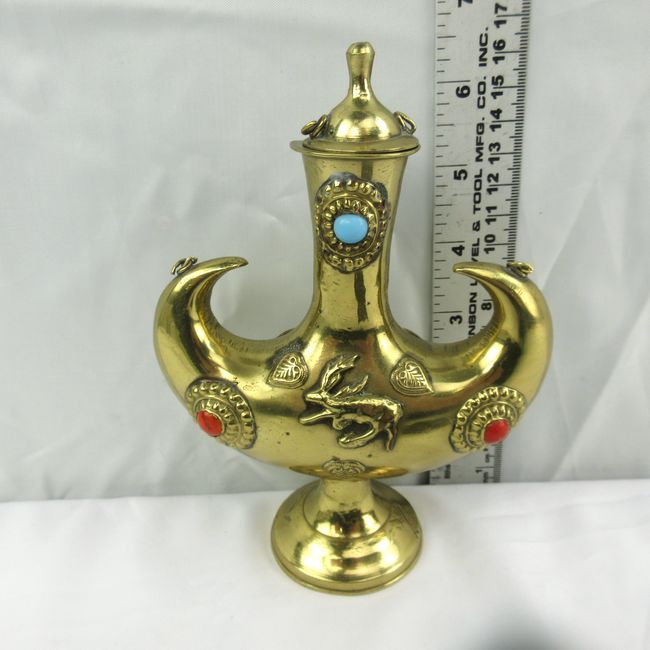 Current Bid: $32.00 [Refresh Price]YOU WILL NEED TO REFRESH THIS PAGE TO SEE UPDATED BID (Log in and this will update automatically) You must LOG IN or REGISTER to see this full page auction listing and bid. Auction is Over Winning Bid Amount: $32.00 **Lot Details: (LOT: Y332) - Vintage brass trisula shaped vase with lid and colorful stones and a brass letter holder Log in to add this lot to your watch list or place a bid |
