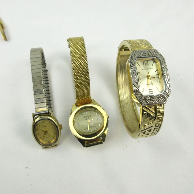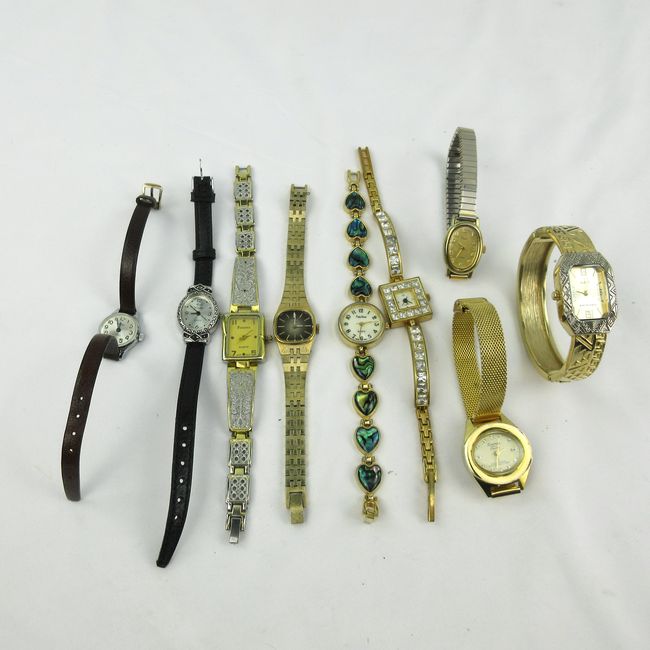 Current Bid: $7.00 [Refresh Price]YOU WILL NEED TO REFRESH THIS PAGE TO SEE UPDATED BID (Log in and this will update automatically) You must LOG IN or REGISTER to see this full page auction listing and bid. Auction is Over Winning Bid Amount: $7.00 **Lot Details: (LOT: Y341) - Ten vintage assorted women’s watches such as: Seiko, Timex, Vernier, Cardinal, Citizen, and one that is self~winding. All need new batteries Log in to add this lot to your watch list or place a bid |
