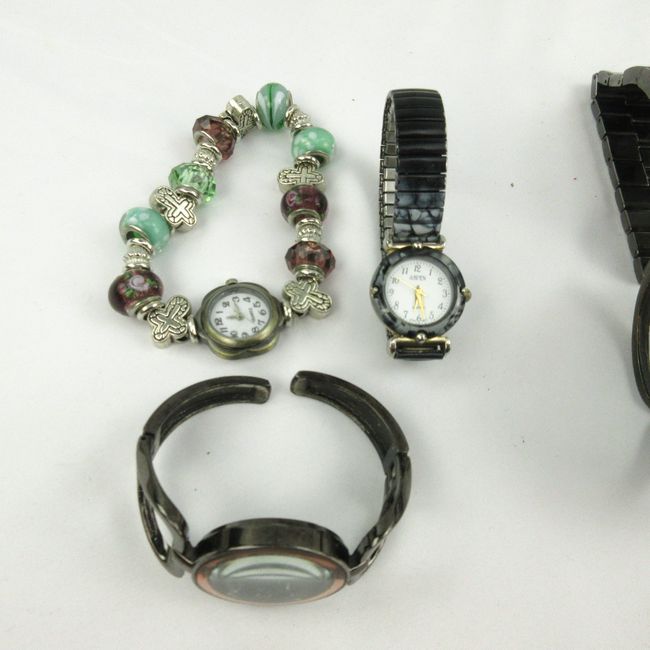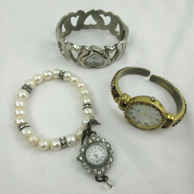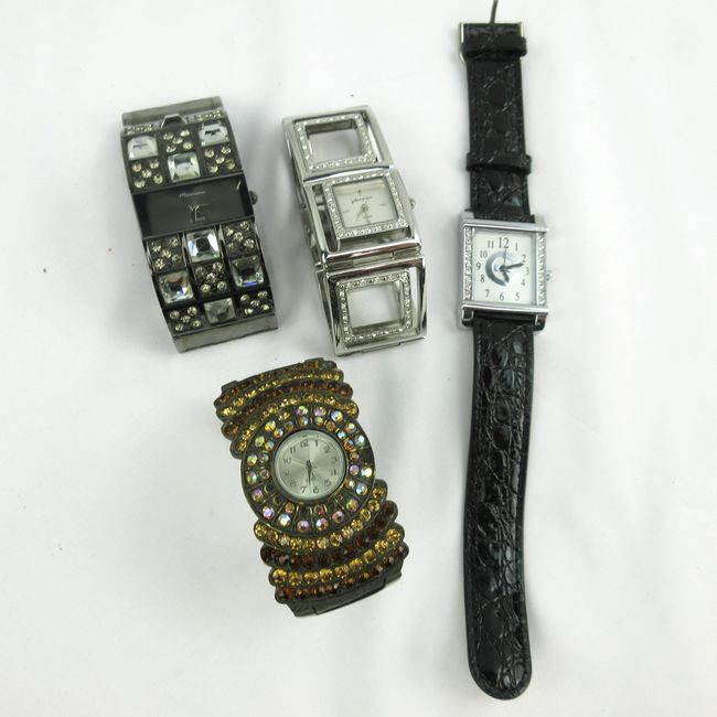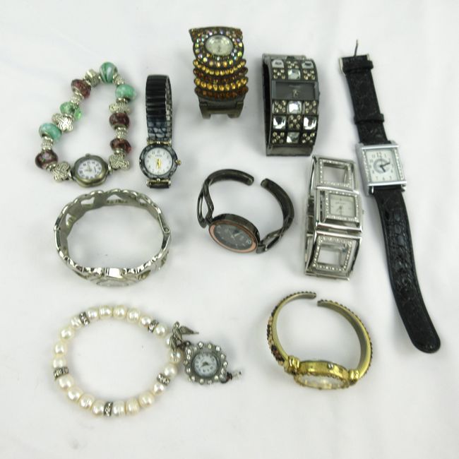 Current Bid: $5.00 [Refresh Price]YOU WILL NEED TO REFRESH THIS PAGE TO SEE UPDATED BID (Log in and this will update automatically) You must LOG IN or REGISTER to see this full page auction listing and bid. Auction is Over Winning Bid Amount: $5.00 **Lot Details: (LOT: Y343) - Ten assorted watches, most are cuff style for ladies. They all just need new batteries. Log in to add this lot to your watch list or place a bid |