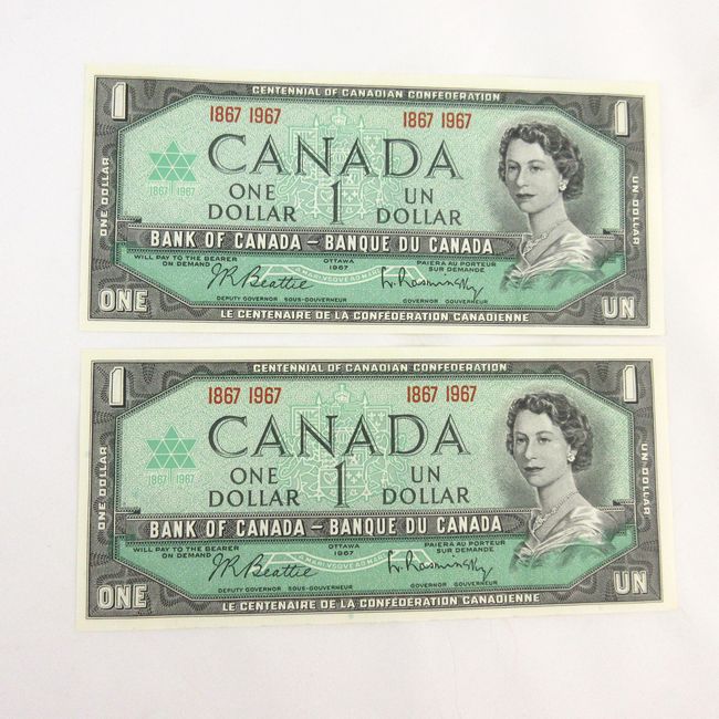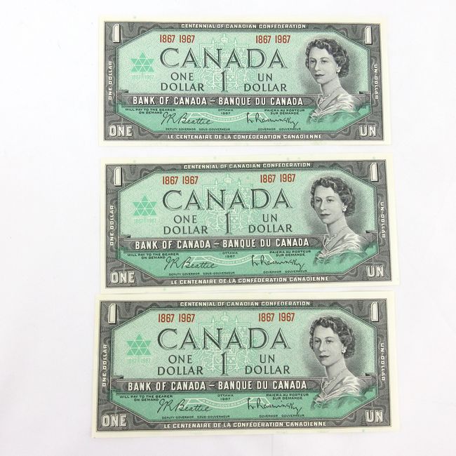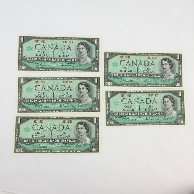Current Bid: $24.10 [Refresh Price]YOU WILL NEED TO REFRESH THIS PAGE TO SEE UPDATED BID (Log in and this will update automatically) You must LOG IN or REGISTER to see this full page auction listing and bid. Auction is Over Winning Bid Amount: $24.10 **Lot Details: (LOT: B20) - Canada, Lot of Five, 1967 One Dollar Banknotes. These Notes are Gems from an Original Brick. Log in to add this lot to your watch list or place a bid |
