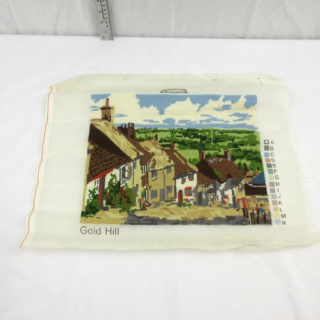 Current Bid: $11.00 [Refresh Price]YOU WILL NEED TO REFRESH THIS PAGE TO SEE UPDATED BID (Log in and this will update automatically) You must LOG IN or REGISTER to see this full page auction listing and bid. Auction is Over Winning Bid Amount: $11.00 **Lot Details: (LOT: B31) - Needlepoint tapestry depicting a view of Gold Hill, a village in Shaftesbury Dorset. Gold Hill became famous for the Hovis advert showing an old world cobbled street and cottages. This is ready for framing or to be made into a cushio Log in to add this lot to your watch list or place a bid |