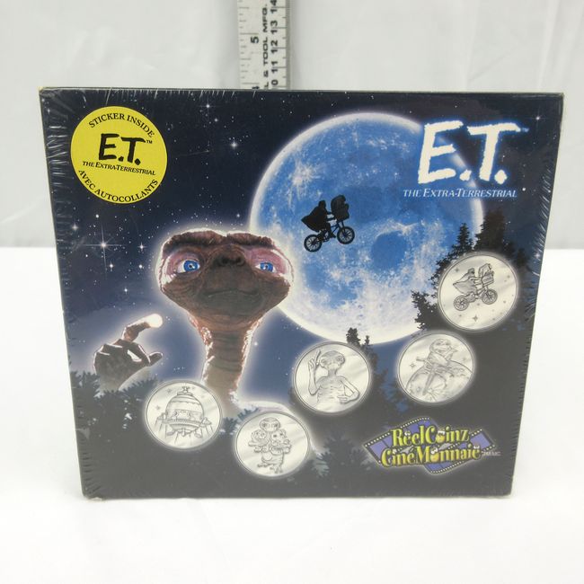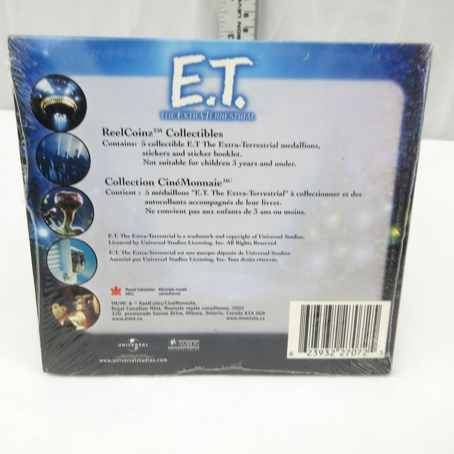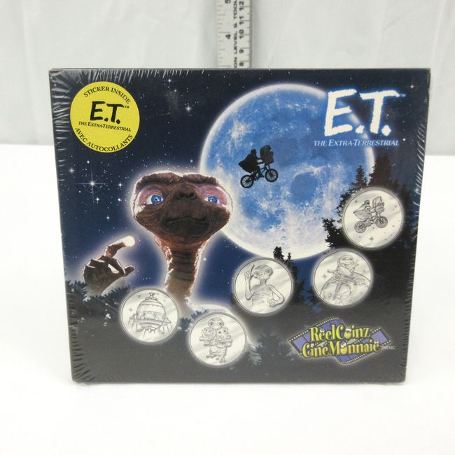 Current Bid: $32.00 [Refresh Price]YOU WILL NEED TO REFRESH THIS PAGE TO SEE UPDATED BID (Log in and this will update automatically) You must LOG IN or REGISTER to see this full page auction listing and bid. Auction is Over Winning Bid Amount: $32.00 **Lot Details: (LOT: B41) - ET the Extra~Terrestrial Reel Coinz issued by the Royal Canadian Mint in 2002. This sealed set contains 5 collectible ET the Extra Terrestrial medallions, stickers and sticker booklet. Log in to add this lot to your watch list or place a bid |