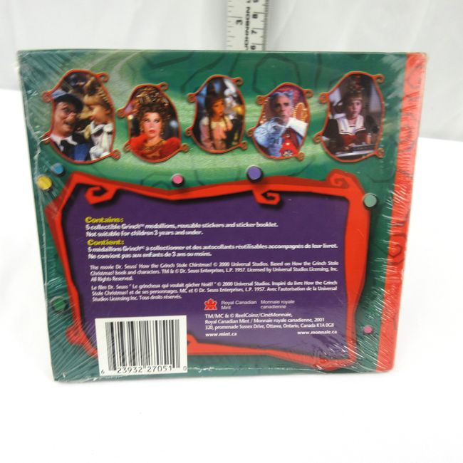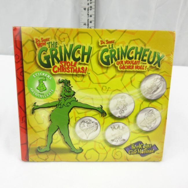 Current Bid: $20.00 [Refresh Price]YOU WILL NEED TO REFRESH THIS PAGE TO SEE UPDATED BID (Log in and this will update automatically) You must LOG IN or REGISTER to see this full page auction listing and bid. Auction is Over Winning Bid Amount: $20.00 **Lot Details: (LOT: B43) - Royal Canadian Mint issued Reel Coinz 2000 How the Grinch Stole Christmas. This sealed set includes 5 collectible Grinch medallions, reusable stickers and a sticker booklet. Log in to add this lot to your watch list or place a bid |