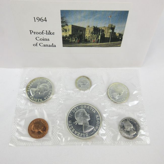 Current Bid: $35.03 [Refresh Price]YOU WILL NEED TO REFRESH THIS PAGE TO SEE UPDATED BID (Log in and this will update automatically) You must LOG IN or REGISTER to see this full page auction listing and bid. Auction is Over Winning Bid Amount: $35.03 **Lot Details: (LOT: B47) - 1964 Canadian Proof Like Mint Set is minted by the Royal Canadian Mint. It comes sealed and contains 6 coins that are uncirculated Canadian coins in which 4 are made with 80 percent silver 20 percent copper alloy. This product contain Log in to add this lot to your watch list or place a bid |
