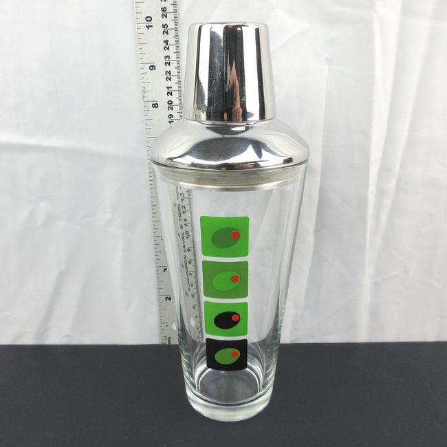 Current Bid: $17.00 [Refresh Price]YOU WILL NEED TO REFRESH THIS PAGE TO SEE UPDATED BID (Log in and this will update automatically) You must LOG IN or REGISTER to see this full page auction listing and bid. Auction is Over Winning Bid Amount: $17.00 **Lot Details: (LOT: B58) - MCM cocktail shaker with olives motif Log in to add this lot to your watch list or place a bid |