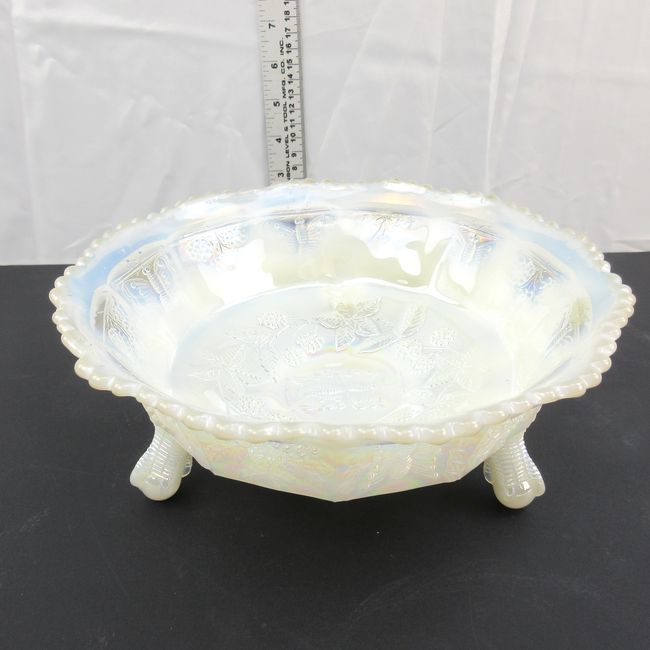 Current Bid: $27.00 [Refresh Price]YOU WILL NEED TO REFRESH THIS PAGE TO SEE UPDATED BID (Log in and this will update automatically) You must LOG IN or REGISTER to see this full page auction listing and bid. Auction is Over Winning Bid Amount: $27.00 **Lot Details: (LOT: B60) - White opalescent 3 footed Butterfly and Berry bowl. This is pretty spectacular! Log in to add this lot to your watch list or place a bid |