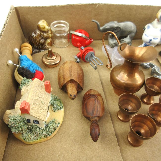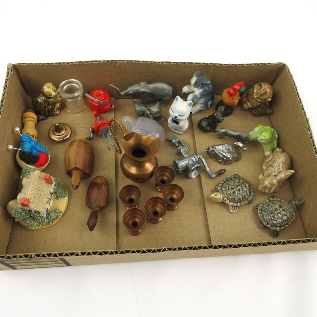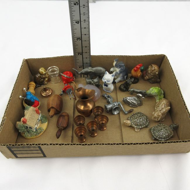 Current Bid: $9.99 [Refresh Price]YOU WILL NEED TO REFRESH THIS PAGE TO SEE UPDATED BID (Log in and this will update automatically) You must LOG IN or REGISTER to see this full page auction listing and bid. Auction is Over Winning Bid Amount: $9.99 **Lot Details: (LOT: B66) - Assorted miniatures in brass, pewter, china and wood Log in to add this lot to your watch list or place a bid |