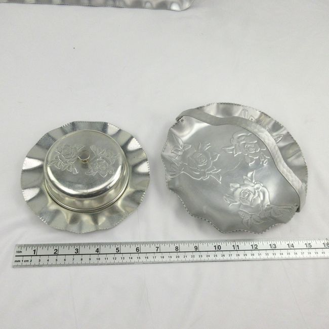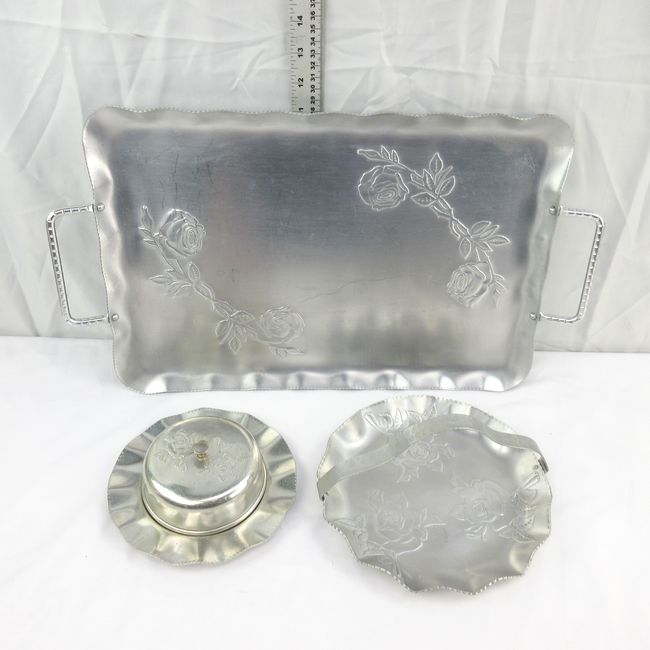 Current Bid: $7.00 [Refresh Price]YOU WILL NEED TO REFRESH THIS PAGE TO SEE UPDATED BID (Log in and this will update automatically) You must LOG IN or REGISTER to see this full page auction listing and bid. Auction is Over Winning Bid Amount: $7.00 **Lot Details: (LOT: B67) - 1950’s aluminum serving tray, covered butter and handled round tray all with the same rose pattern Log in to add this lot to your watch list or place a bid |