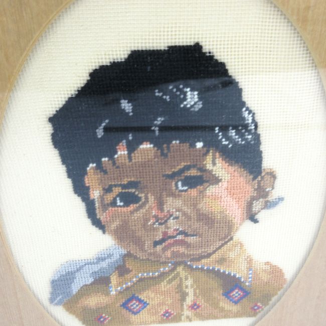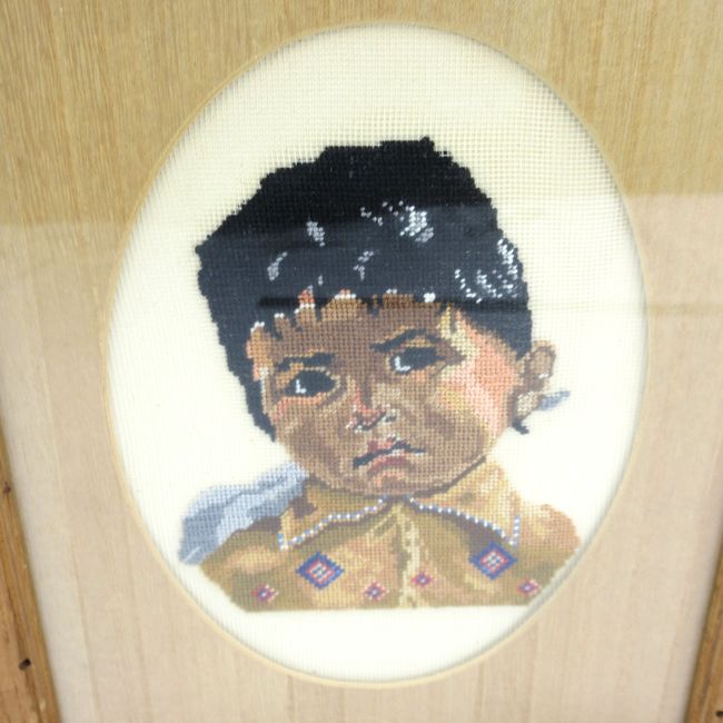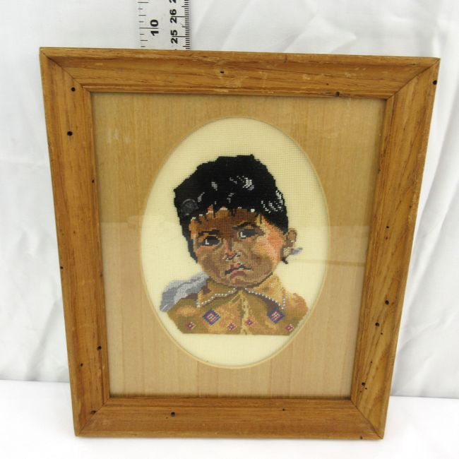 Current Bid: $5.00 [Refresh Price]YOU WILL NEED TO REFRESH THIS PAGE TO SEE UPDATED BID (Log in and this will update automatically) You must LOG IN or REGISTER to see this full page auction listing and bid. Auction is Over Winning Bid Amount: $5.00 **Lot Details: (LOT: B77) - A vintage double layered needlepoint of a First Nations girl. A great looking piece with lots of emotion depicted. Log in to add this lot to your watch list or place a bid |