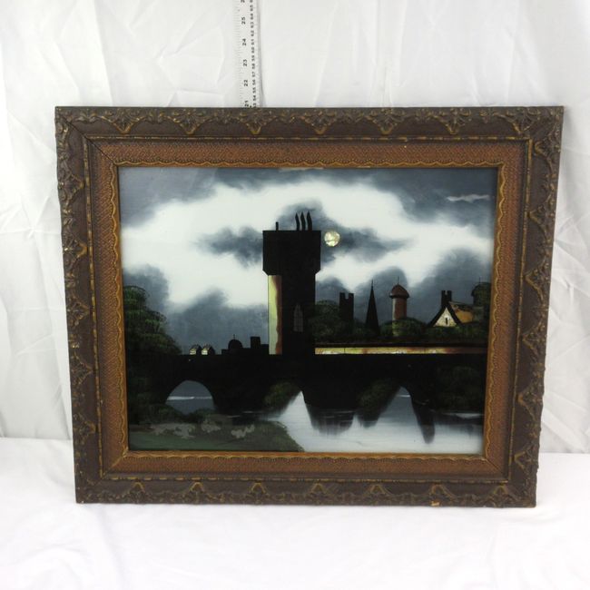 Current Bid: $37.00 [Refresh Price]YOU WILL NEED TO REFRESH THIS PAGE TO SEE UPDATED BID (Log in and this will update automatically) You must LOG IN or REGISTER to see this full page auction listing and bid. Auction is Over Winning Bid Amount: $37.00 **Lot Details: (LOT: B80) - A very interesting and unique antique reverse painted glass painting with an ornate frame. Approximately 25.5`` x 21.5`` including the frame. Frame shows some signs of age, but still displays well. Log in to add this lot to your watch list or place a bid |