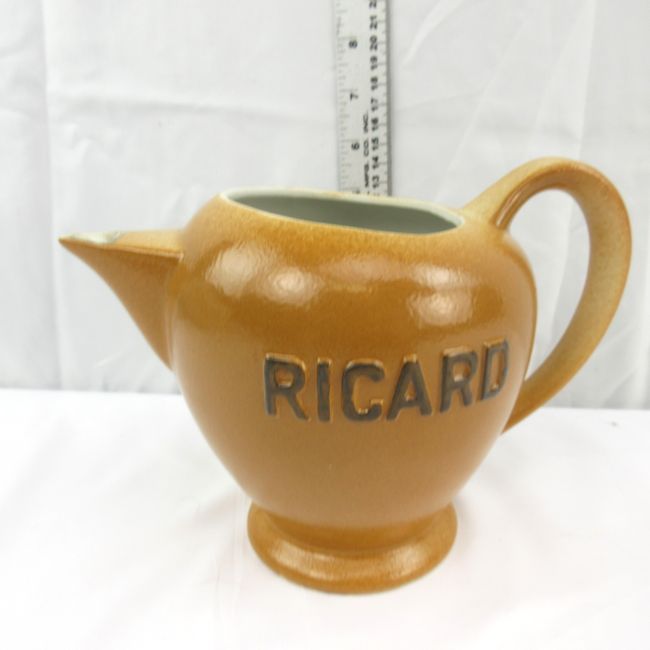 Current Bid: $16.00 [Refresh Price]YOU WILL NEED TO REFRESH THIS PAGE TO SEE UPDATED BID (Log in and this will update automatically) You must LOG IN or REGISTER to see this full page auction listing and bid. Auction is Over Winning Bid Amount: $16.00 **Lot Details: (LOT: B101) - A vintage Ricard stoneware jug, made in France. An advertising piece for French Ricard anise flavoured liquer These pitchers can be found in French Bistros/cafes and are used to serve water along with drinks. Very good condition. Log in to add this lot to your watch list or place a bid |
