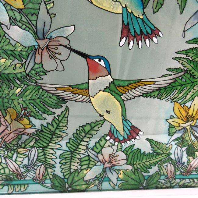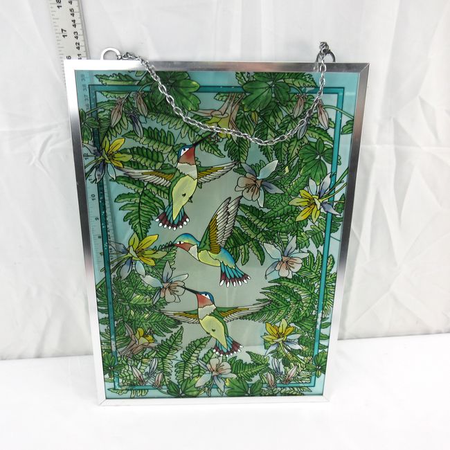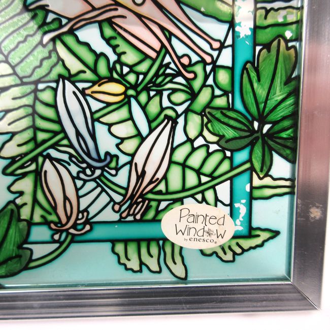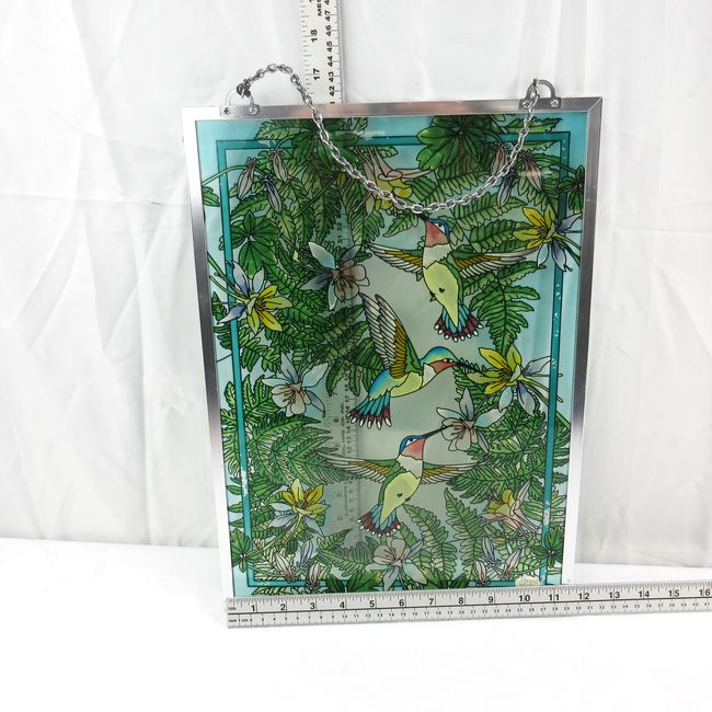 Current Bid: $35.01 [Refresh Price]YOU WILL NEED TO REFRESH THIS PAGE TO SEE UPDATED BID (Log in and this will update automatically) You must LOG IN or REGISTER to see this full page auction listing and bid. Auction is Over Winning Bid Amount: $35.01 **Lot Details: (LOT: B106) - Painted Windows by Enesco vintage Hummingbird scene suncatcher. Approximately 14.5`` x 12``. Some small spots of paint loss, but still displays well and looks awesome with the sun shining through! Log in to add this lot to your watch list or place a bid |