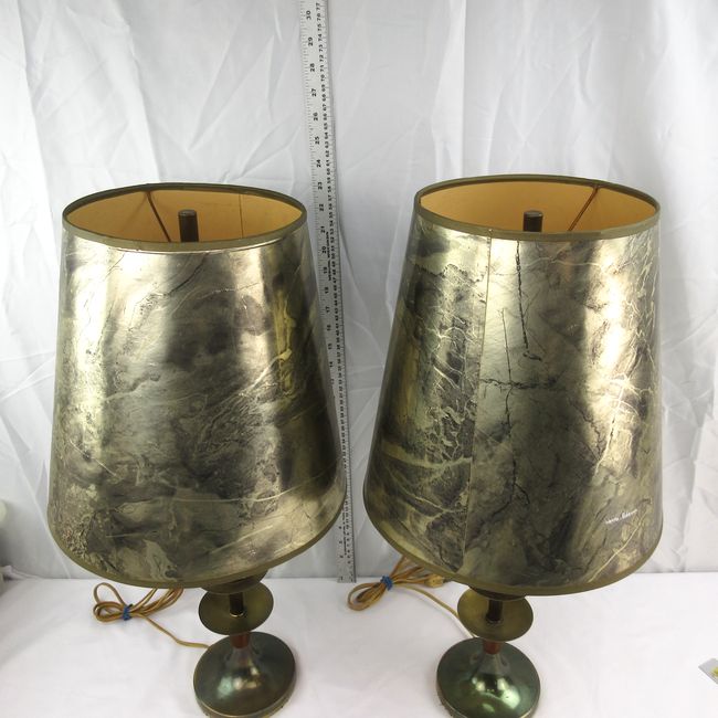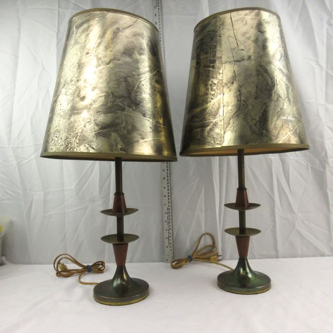 Current Bid: $5.00 [Refresh Price]YOU WILL NEED TO REFRESH THIS PAGE TO SEE UPDATED BID (Log in and this will update automatically) You must LOG IN or REGISTER to see this full page auction listing and bid. Auction is Over Winning Bid Amount: $5.00 **Lot Details: (LOT: B107) - A pair of vintage MCM teak and metal lamps with gold and black shades. One of the shades has some damage but still displays well as it's hard to see, especially if you position it facing a wall or corner. Both la... Log in to add this lot to your watch list or place a bid |