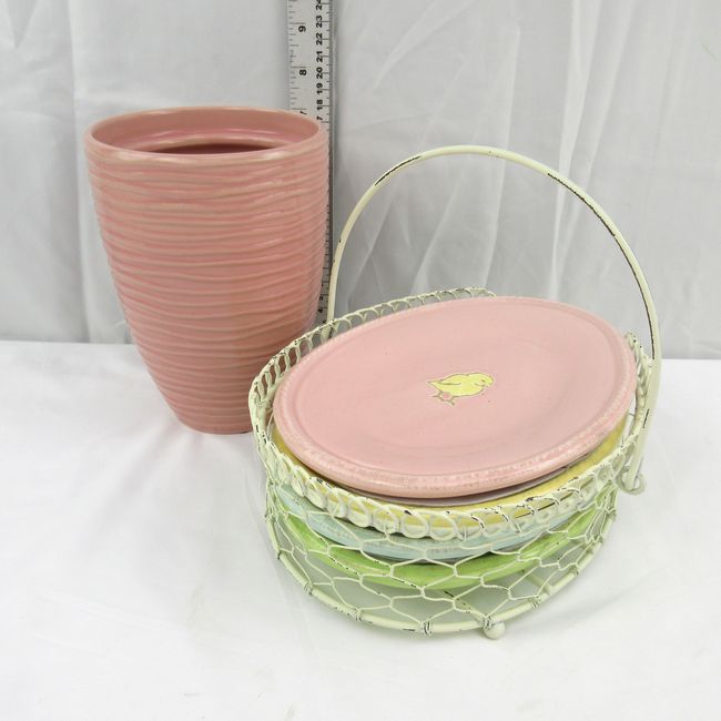 Current Bid: $[Refresh Price]YOU WILL NEED TO REFRESH THIS PAGE TO SEE UPDATED BID (Log in and this will update automatically) You must LOG IN or REGISTER to see this full page auction listing and bid. Auction is Over Winning Bid Amount: $This item did not sell **Lot Details: (LOT: B124) - 4 farmhouse style Spring themed plates in a cream coloured wire basket. A large ribbed pink vase for your spring flowers Log in to add this lot to your watch list or place a bid |