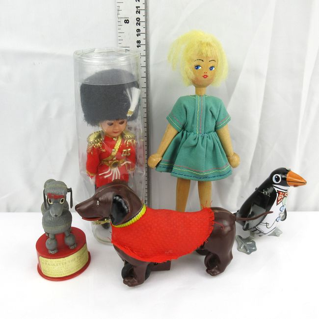 Current Bid: $9.00 [Refresh Price]YOU WILL NEED TO REFRESH THIS PAGE TO SEE UPDATED BID (Log in and this will update automatically) You must LOG IN or REGISTER to see this full page auction listing and bid. Auction is Over Winning Bid Amount: $9.00 **Lot Details: (LOT: B138) - Vintage Toys , peg doll , souvenir dog , tin Penguin and rolling dashound Log in to add this lot to your watch list or place a bid |
