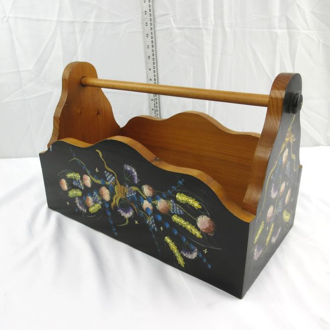 Current Bid: $14.00 [Refresh Price]YOU WILL NEED TO REFRESH THIS PAGE TO SEE UPDATED BID (Log in and this will update automatically) You must LOG IN or REGISTER to see this full page auction listing and bid. Auction is Over Winning Bid Amount: $14.00 **Lot Details: (LOT: B175) - Vintage solid wood tote with lovely hand~painted floral design. Excellent condition. 10`` h x 16`` l Log in to add this lot to your watch list or place a bid |
