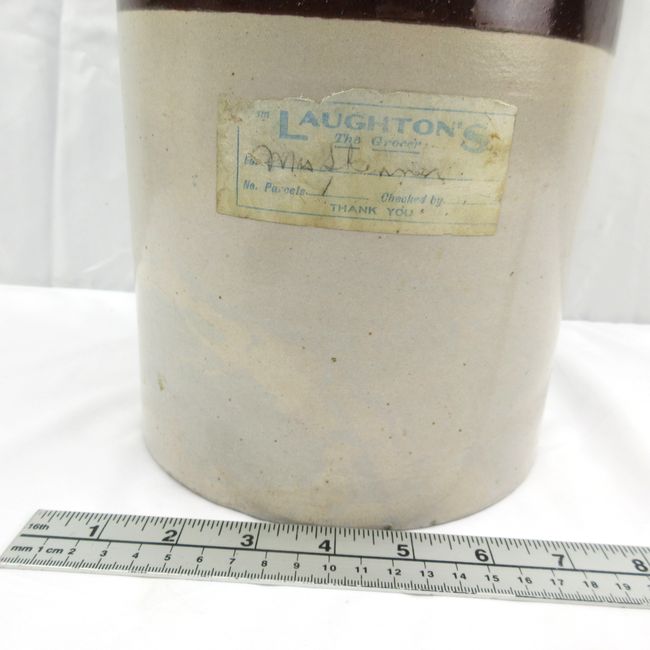 Current Bid: $12.00 [Refresh Price]YOU WILL NEED TO REFRESH THIS PAGE TO SEE UPDATED BID (Log in and this will update automatically) You must LOG IN or REGISTER to see this full page auction listing and bid. Auction is Over Winning Bid Amount: $12.00 **Lot Details: (LOT: B191) - Antique finger jug, marked 1, with very old sticker from Laughton’s Grocer for Mrs. Skinner. Small chip near base, but otherwise in very nice condition, given the age. Measures 13`` high. Log in to add this lot to your watch list or place a bid |