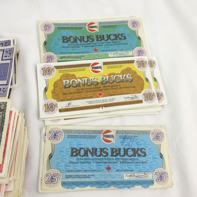 Current Bid: $16.00 [Refresh Price]YOU WILL NEED TO REFRESH THIS PAGE TO SEE UPDATED BID (Log in and this will update automatically) You must LOG IN or REGISTER to see this full page auction listing and bid. Auction is Over Winning Bid Amount: $16.00 **Lot Details: (LOT: B203) - Big lot of vintage canadian tire money and some pioneer gas bucks as well. Log in to add this lot to your watch list or place a bid |