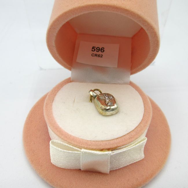 Current Bid: $9.00 [Refresh Price]YOU WILL NEED TO REFRESH THIS PAGE TO SEE UPDATED BID (Log in and this will update automatically) You must LOG IN or REGISTER to see this full page auction listing and bid. Auction is Over Winning Bid Amount: $9.00 **Lot Details: (LOT: B210) - Sterling Silver Necklace Charm. Comes is gift box. New but has tarnished as it is new old stock. Needs a little silver polish Log in to add this lot to your watch list or place a bid |