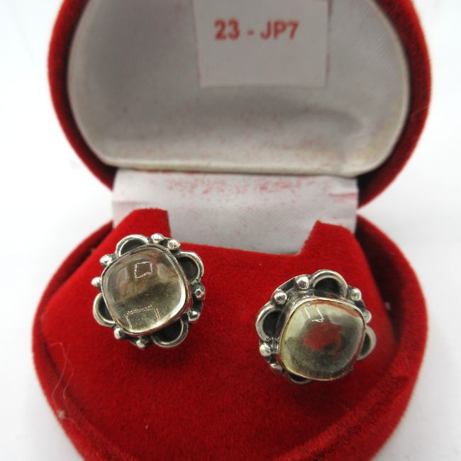 Current Bid: $9.00 [Refresh Price]YOU WILL NEED TO REFRESH THIS PAGE TO SEE UPDATED BID (Log in and this will update automatically) You must LOG IN or REGISTER to see this full page auction listing and bid. Auction is Over Winning Bid Amount: $9.00 **Lot Details: (LOT: B214) - Sterling silver earrings. We think the stones are citrine Log in to add this lot to your watch list or place a bid |