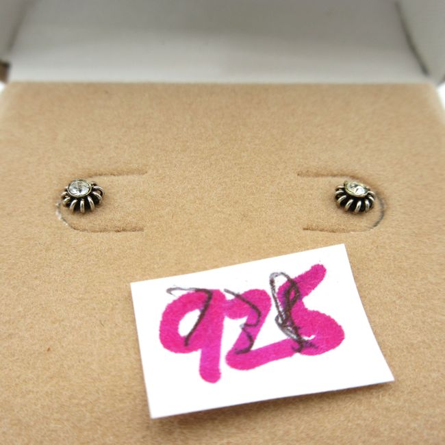 Current Bid: $5.00 [Refresh Price]YOU WILL NEED TO REFRESH THIS PAGE TO SEE UPDATED BID (Log in and this will update automatically) You must LOG IN or REGISTER to see this full page auction listing and bid. Auction is Over Winning Bid Amount: $5.00 **Lot Details: (LOT: B225) - Sterling silver earrings with stone. Unsure what the stone is. Log in to add this lot to your watch list or place a bid |