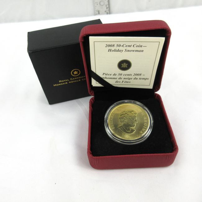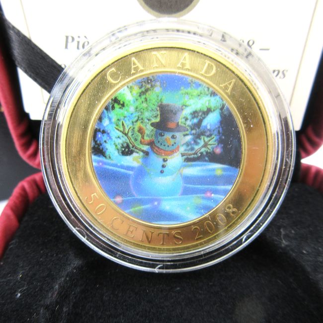 Current Bid: $28.00 [Refresh Price]YOU WILL NEED TO REFRESH THIS PAGE TO SEE UPDATED BID (Log in and this will update automatically) You must LOG IN or REGISTER to see this full page auction listing and bid. Auction is Over Winning Bid Amount: $28.00 **Lot Details: (LOT: B248) - 2008 Royal Canadian Mint 50 Cent Holiday Snowman coin. Nice large coin with printed features. Brass plated steel. Log in to add this lot to your watch list or place a bid |