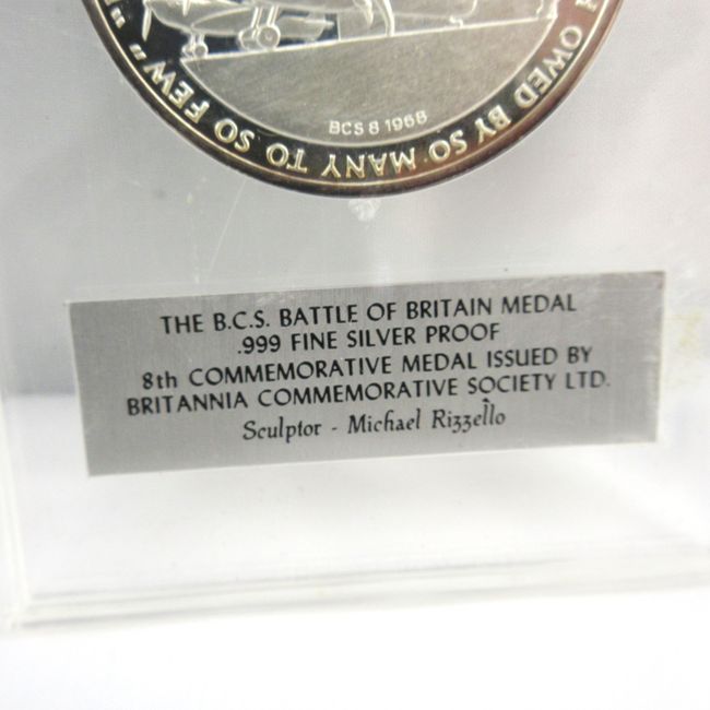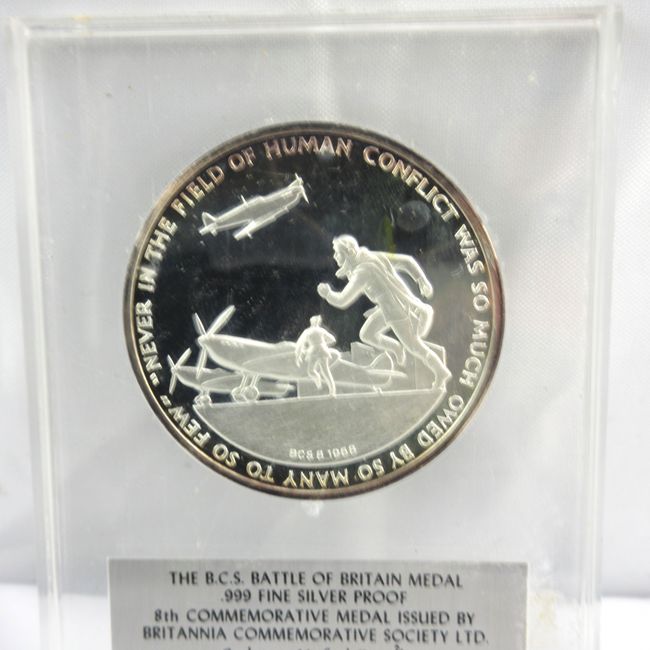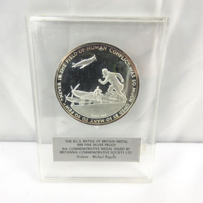 Current Bid: $55.10 [Refresh Price]YOU WILL NEED TO REFRESH THIS PAGE TO SEE UPDATED BID (Log in and this will update automatically) You must LOG IN or REGISTER to see this full page auction listing and bid. Auction is Over Winning Bid Amount: $55.10 **Lot Details: (LOT: B257) - Beautiful 1968 Britannia Commemorative Society 1 troy ounce fine .999 Silver Battle of Britain medal with case. Not Lucite cube, case opens. Log in to add this lot to your watch list or place a bid |