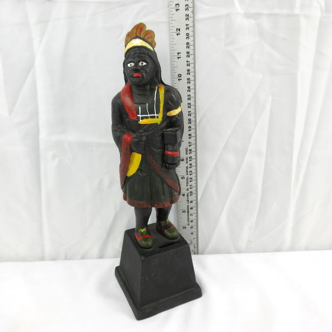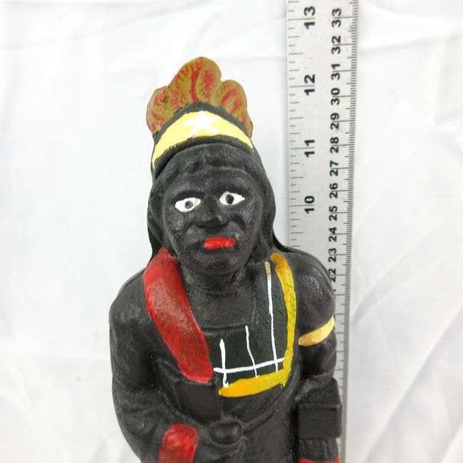 Current Bid: $10.01 [Refresh Price]YOU WILL NEED TO REFRESH THIS PAGE TO SEE UPDATED BID (Log in and this will update automatically) You must LOG IN or REGISTER to see this full page auction listing and bid. Auction is Over Winning Bid Amount: $10.01 **Lot Details: (LOT: B269) - Vintage cast iron reproduction coin bank. This proud warrior stands almost 13`` tall on his base. Just a touch of wear from age, display and storage. Log in to add this lot to your watch list or place a bid |