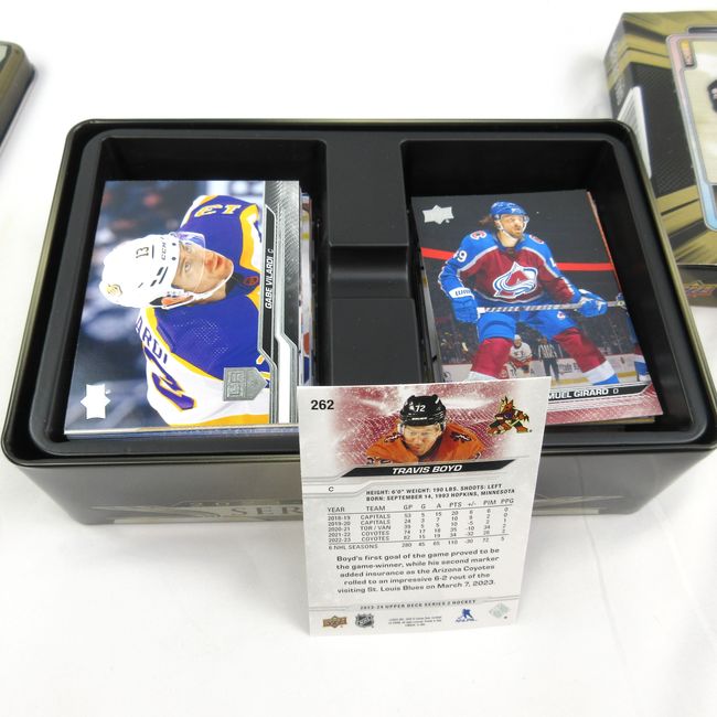 Current Bid: $12.01 [Refresh Price]YOU WILL NEED TO REFRESH THIS PAGE TO SEE UPDATED BID (Log in and this will update automatically) You must LOG IN or REGISTER to see this full page auction listing and bid. Auction is Over Winning Bid Amount: $12.01 **Lot Details: (LOT: B275) - Hockey cards from recent years with lots of insert cards Log in to add this lot to your watch list or place a bid |