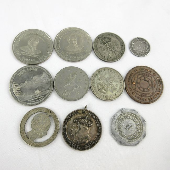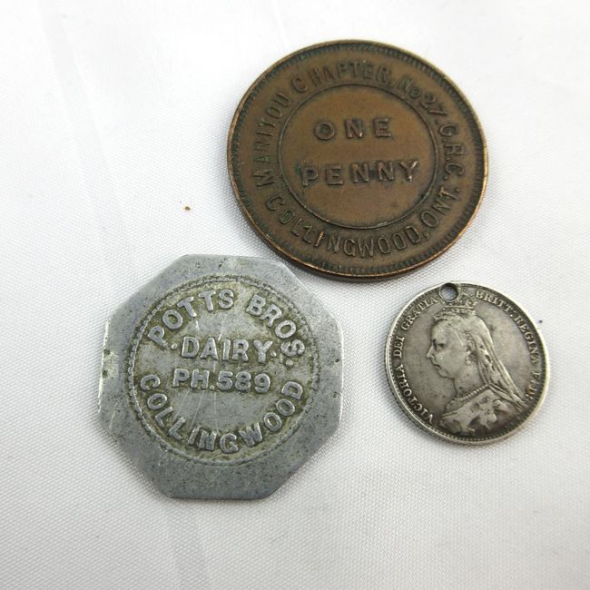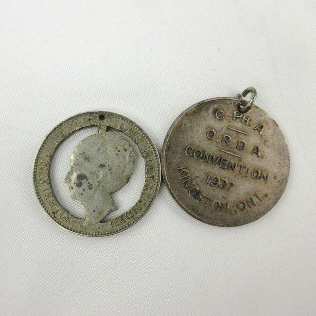 Current Bid: $14.00 [Refresh Price]YOU WILL NEED TO REFRESH THIS PAGE TO SEE UPDATED BID (Log in and this will update automatically) You must LOG IN or REGISTER to see this full page auction listing and bid. Auction is Over Winning Bid Amount: $14.00 **Lot Details: (LOT: B280) - **Rare POTTS DAIRY milk token from Collingwood in this lot of coins and tokens!** 1931 silver cutout coin pendant from the Netherlands and a 1937 convention of the Canadian pharmaceutical association badge token and some other british Log in to add this lot to your watch list or place a bid |