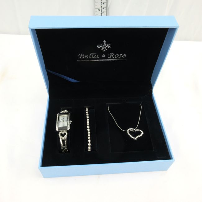 Current Bid: $15.00 [Refresh Price]YOU WILL NEED TO REFRESH THIS PAGE TO SEE UPDATED BID (Log in and this will update automatically) You must LOG IN or REGISTER to see this full page auction listing and bid. Auction is Over Winning Bid Amount: $15.00 **Lot Details: (LOT: B286) - Bella and Rose Lady`s gift set. Watch, bracelet, and necklace Log in to add this lot to your watch list or place a bid |