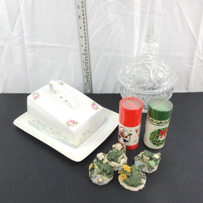 Current Bid: $5.00 [Refresh Price]YOU WILL NEED TO REFRESH THIS PAGE TO SEE UPDATED BID (Log in and this will update automatically) You must LOG IN or REGISTER to see this full page auction listing and bid. Auction is Over Winning Bid Amount: $5.00 **Lot Details: (LOT: B344) - Large glass covered candy dish, vintage covered cheese dish Log in to add this lot to your watch list or place a bid |