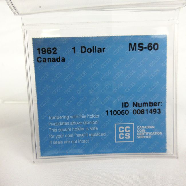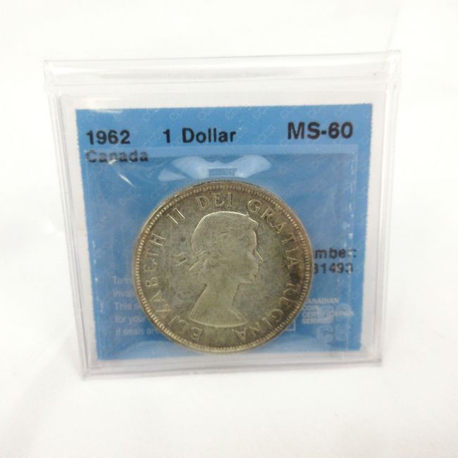 Current Bid: $23.00 [Refresh Price]YOU WILL NEED TO REFRESH THIS PAGE TO SEE UPDATED BID (Log in and this will update automatically) You must LOG IN or REGISTER to see this full page auction listing and bid. Auction is Over Winning Bid Amount: $23.00 **Lot Details: (LOT: C20) - 1962 Canada 1 Dollar coin, CCCS graded MS~60, 23.3 g of 80 per cent silver Log in to add this lot to your watch list or place a bid |