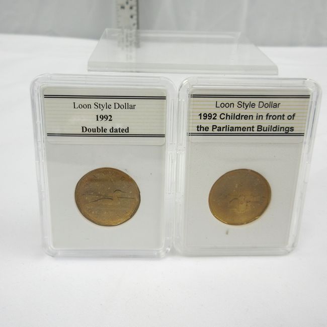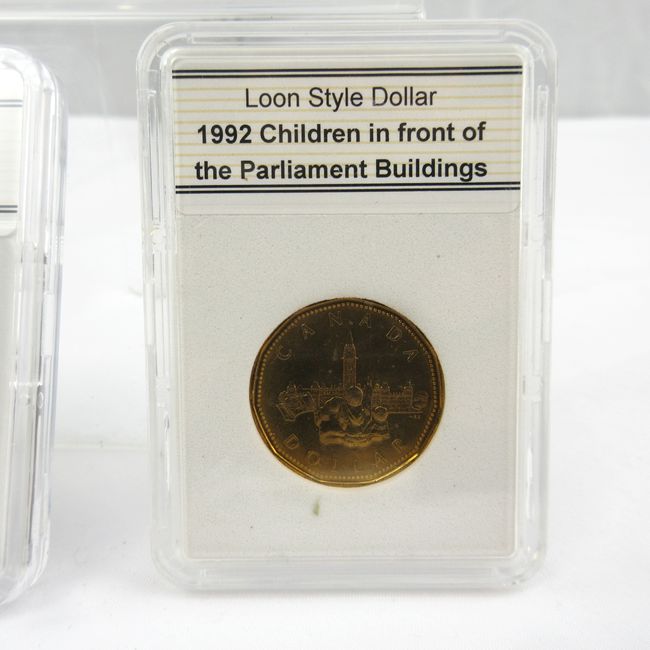 Current Bid: $[Refresh Price]YOU WILL NEED TO REFRESH THIS PAGE TO SEE UPDATED BID (Log in and this will update automatically) You must LOG IN or REGISTER to see this full page auction listing and bid. Auction is Over Winning Bid Amount: $This item did not sell **Lot Details: (LOT: C32) - 1992 Loonies. Canadian $1 Common Loon Dollar Coin. Brilliant Uncirculated. In 1992, the Royal Canadian Mint (RCM) also issued a special "Confederation 125th Anniversary" loonie, featuring a dual date (1867-1992... Log in to add this lot to your watch list or place a bid |