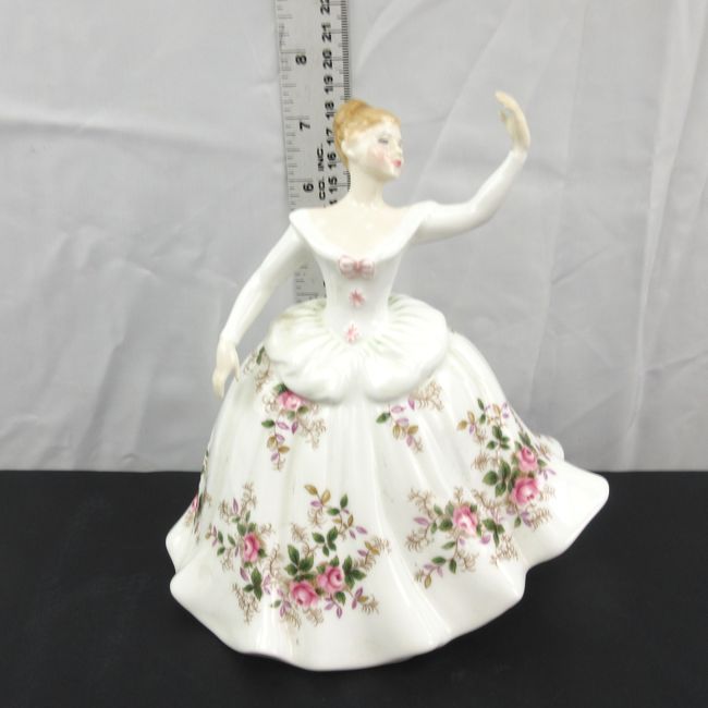 Current Bid: $17.03 [Refresh Price]YOU WILL NEED TO REFRESH THIS PAGE TO SEE UPDATED BID (Log in and this will update automatically) You must LOG IN or REGISTER to see this full page auction listing and bid. Auction is Over Winning Bid Amount: $17.03 **Lot Details: (LOT: D56) - Royal Doulton Shirley HN 2702. This 1984 figurine was designed by Peggy Davies and is handmade and hand decorated due to her vintage. This piece depicts a lady in a beautiful, flowered gown dancing. The painting is well done, and the Log in to add this lot to your watch list or place a bid |